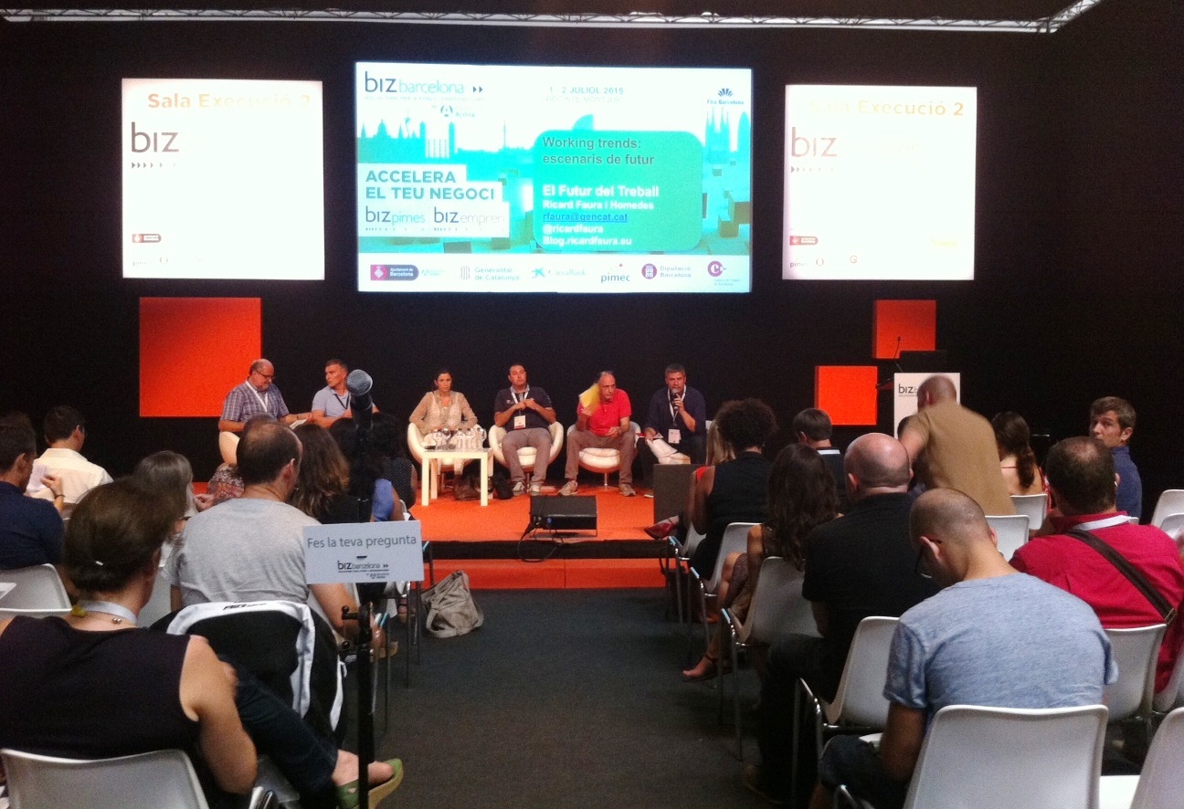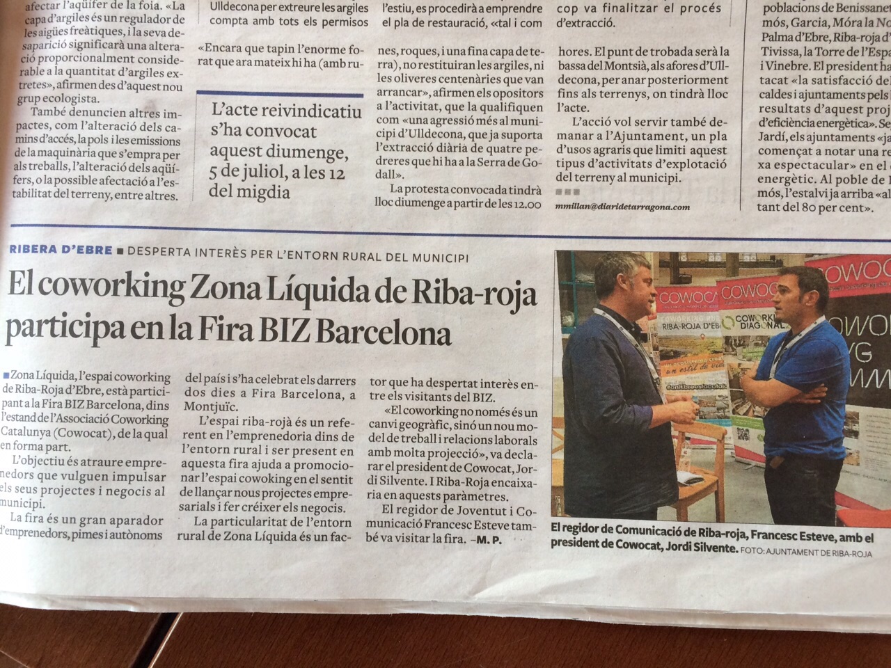 Després de dos mesos intensos en què vam organitzar el 1r coworking Day de Catalunya, amb els companys de Coworking Tona i també una jornada transfronterera a Valls, organitzat amb l’espai La Magrana, la Xecc i COWOPY, un projecte pilotat a França amb impacte a les zones del Pirineu, teníem el repte de participar al Biz amb un espai propi i amb més suport; això ens va donar l’oportunitat d’aportar contingut al programa de Bizbarcelona i crear uns continguts propis al nostre stand.